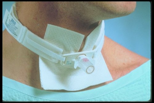 Disposable Trachea Tube Holder - Neonate to Infant The Disposable Trachea Tube Holder provides comfortable, controlled support of tracheotomy tubes, eliminating the frustrations associated with twill ties and other holders. Secure fastener tabs quickly and easily attach to the tracheotomy tube, limiting movement and reducing accidental decannulation. A portion of the stretch material allows for cough reflex, accommodates edema and ensures a snug fit. The Disposable Trachea Tube Holder features an exclusive moisture repellent neckband lining, minimizing the amount of moisture absorbed, which reduces the risk of skin breakdown. Single patient use, latex-free neck band.